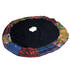 Fabric Christmas tree skirt made with repurposed traditional Guatemalan textiles.