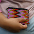In Mayan culture, horizontal zigzags as seen on this handbeaded coin purse were often the symbol for snakes—a tribute to the Maya Goddess Ixchel who wears a snake headdress. Ixchel is most commonly recognized as the goddess of the moon, medicine and midwifery, but she’s also remembered as the goddess of weaving.